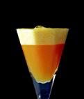 1. Fill ¾ of a cocktail glass with frozen passion fruit juice.