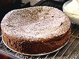 Beat the egg whites in a mixing bowl until stiff peaks form and fold into the chocolate mixture. Pour into the prepared pan and bake until the cake is set, the top starts to crack and a toothpick inserted into the cake comes out with moist crumbs clinging to it, 20 to 25 minutes. Let stand 10 minutes, then remove sides of pan.