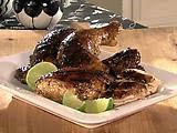 In a small bowl, combine jerk seasoning, cloves, and cinnamon. Sprinkle liberally over all sides of chicken; set aside. Chicken can be prepared up to this point a day ahead.