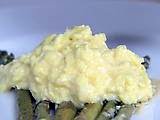 While the asparagus is roasting, whisk the eggs in a bowl with the half-and-half, and salt and pepper, to taste. Melt 1/2 tablespoon of butter in a large skillet. Cook the eggs on the lowest heat, stirring constantly with a wooden spoon, to the desired doneness. Remove from the heat, add the remaining 1/2 tablespoon of butter, and stir until it melts. Check for seasoning, salt and pepper, if needed, and serve with the roasted asparagus and 7-grain bread.