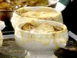 Alternative method: Ladle the soup into bowls, top each with 2 slices of bread and top with cheese. Put the bowls into the oven to toast the bread and melt the cheese.