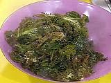 - 1 1/4 pounds cleaned kale, 1 large bunch, trimmed and chopped