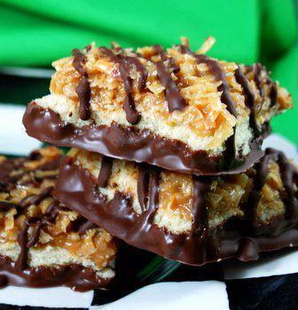 When cooled, cut into 30 bars with a large knife or a pizza cutter (it’s easy to get it through the topping).