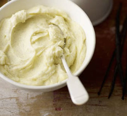 Combine the softened butter, sugar and the caviar from the vanilla bean. Stir until totally combined, and then spread into a ramekin and chill before serving. (Butter can be made ahead of time and stored in the fridge.)