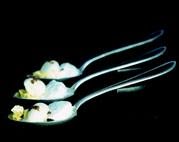 2. Put a teaspoon of rum gelatin in the bottom of a soup spoon.