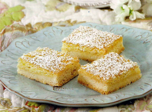 3. To make filling, in medium bowl, mix eggs, sugar, cream, flour, baking powder and coconut extract, whisking to mix well. Stir in coconut. Pour filling over hot, partially baked crust. Bake for 18-20 mins or until center is set. Let cool in pan completely. Cut into squares to serve. Sprinkle with powdered sugar.