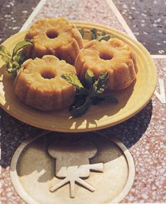 Coat each cup of mini bundt pan with spray. Place 1 tablespoon and 1 pineapple ring in bottom of each cup.