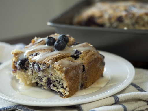 Fold floured blueberries into the batter, then pour it into greased baking dish. Top with 1 tablespoons sugar, then place dish in oven.