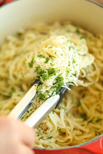 Remove from heat. Stir in pasta and Parmesan until well combined, about 2 minutes; season with salt and pepper, to taste.