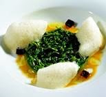3. Sauté the mini-asparagus in the 0.4º oil and cover the asparagus gelatin with them. Drizzle a ring of raw egg sauce and a ring of virgin olive oil around them.