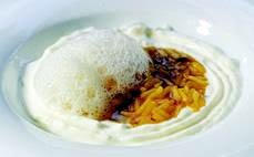 1. Sauté the soya rice in 0.4º olive oil in piping hot oil. Add the saffron base and cook for ½ minute. Reduce until creamy and remove from the heat. Season with salt.