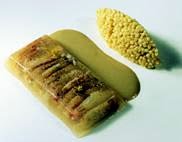 1. Use a mandolin with a 1/10" knife to cut the corn on the cobs in order to separate the corn from the cob and to make corn that will be like cous-cous.