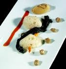 1. Seal the sole roe in a little 0.4º olive oil on the grill. They should be barely done and the skins with the scales removed cooked for 5 seconds on each side.