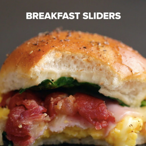 4. Spread the eggs evenly on the rolls, followed by the ham, cheddar, bacon, and spinach.