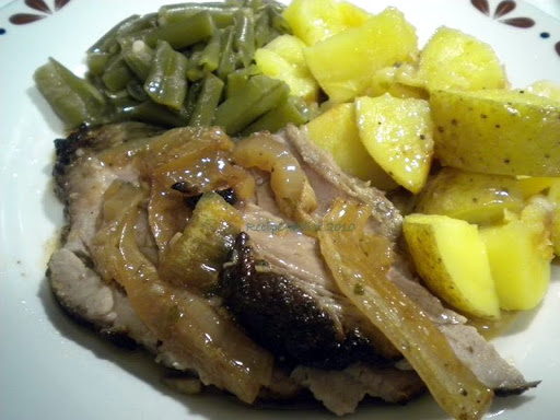Carve the pork, spoon a little of this pan juice over it, and serve with the lemon wedges.