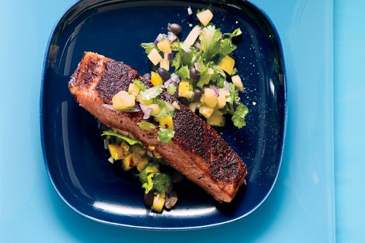 JAMAICAN JERK SALMON AND MANGO PINEAPPLE SALSA