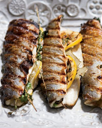- Four 1-pound whole branzinoscaled and gutted, heads and tails removed