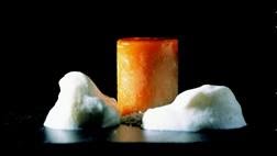 Frozen Apricot Timbal and Amaretto Toffee with Almond Foam