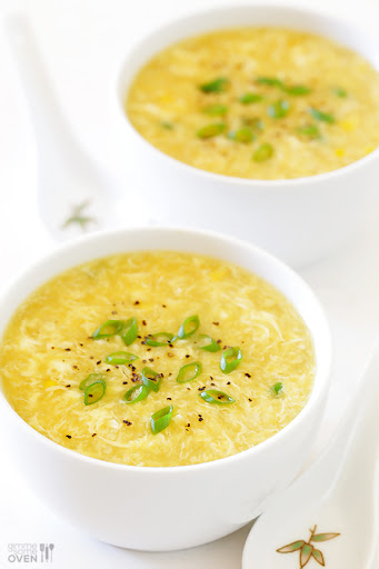 Once the broth reaches a boil, remove from heat. Then use a fork or whisk to stir the broth in a circular motion, while slowly pour the whisked eggs into the soup to create egg ribbons. Stir in the sesame oil, green onions and corn (optional) until combined. Season with salt and pepper to taste.