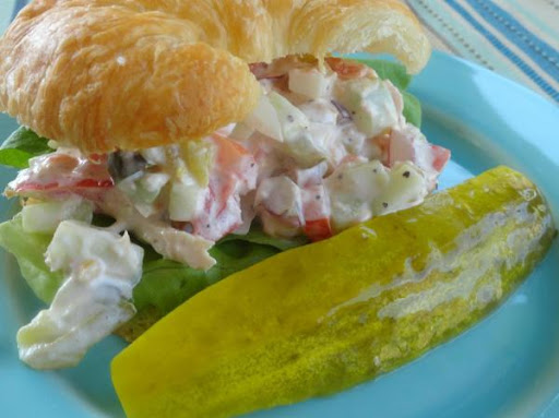 3Place lettuce on croissant and spread with cucumber salad. Serve.