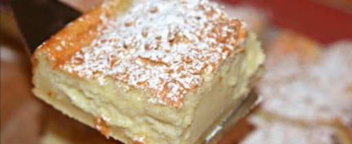 Slowly start adding the milk and beat until everything is well mixed together. Add the egg whites, a third at a time and gently fold them in using a spatula, repeat until all egg whites are folded in. Pour batter into baking dish and bake for approx 60 minutes or until the top is lightly golden. Cool and dust heavily with powdered sugar.