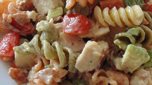 Whisk Italian-style dressing and mayonnaise together in a large bowl. Stir pasta, chicken, bacon, Muenster cheese, celery, green bell pepper, cherry tomatoes, and avocado into dressing until evenly coated.
