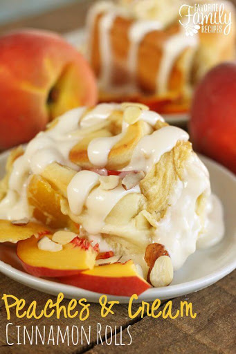 Peaches and Cream Cinnamon Rolls