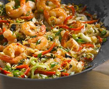 Add 1 teaspoon vegetable oil to wok. Add shrimp and sauté for 2 minutes or until shrimp is pink. Add chicken broth and cook for 2 minutes. Return vegetables to wok, stirring until hot. Serve immediately with rice.