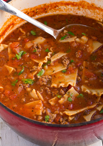 - 8 lasagna noodles, broken into bite size pieces (6.5 oz)