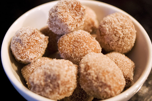 Toss the doughnuts in the mixed spices to coat. Serve warm.