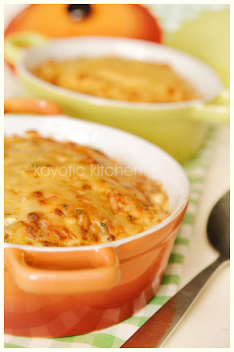 Place the casserole in a preheated oven and bake at 400Fº (200Cº) for 20 to 25 minutes (keep an eye on it) until the cheese has melted and turned golden brown.