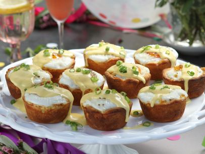 To serve: Run a thin knife around the edge of each muffin cup and gently pop out the eggs Benedict onto a cutting board. Serve immediately, topped with the Hollandaise and sprinkled with scallions.