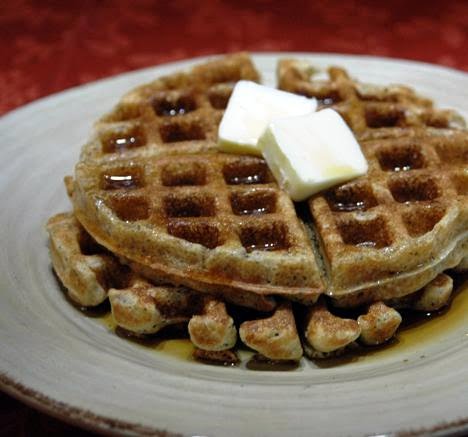 3. Combine all ingredients in the large bowl, and spoon about 1/2 cup-fulls into preheated waffle maker. Don't open the waffle maker to check on them for at a couple of minutes, letting the waffle form a crust.