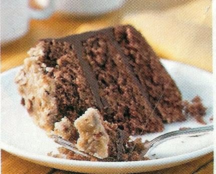 - spread remaining Chocolate Ganache on sides of cake. (Do not frost top of cake.) Chill cake 30 minutes. Pour warm Praline Frosting slowly Over