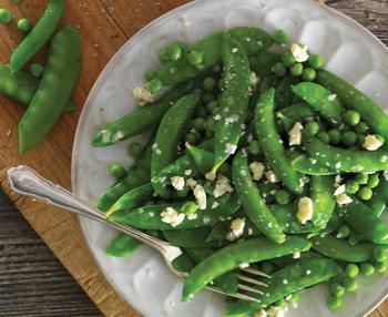 In a large bowl, combine peas with dressing, then add crumbled gorgonzola.