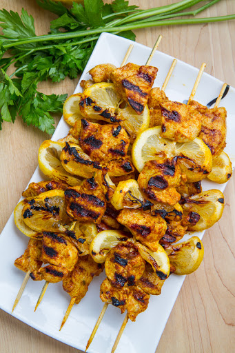 Skewer the chicken and grill over medium-high heat until cooked, about 4-5 minutes per side.
