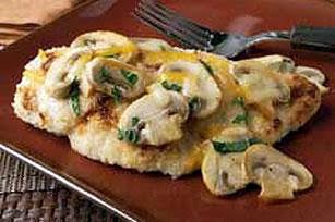 TOP chicken with mushrooms. Sprinkle with shredded cheese; bake 5 min. or until melted.