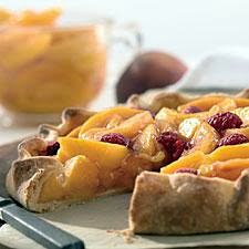 7) Add the peaches and a few of the raspberries, tossing to combine. Set aside.