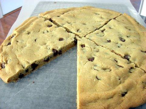 Line a large (11X17-inch) baking pan with foil and press the cookie into a circle. I press my cookie into a 9-inch circle, about 1/4 to 3/8-inch thick. When it bakes, it spreads to about 11 inches, which fits perfectly onto a 12-inch round cardboard circle you can find at most craft stores.