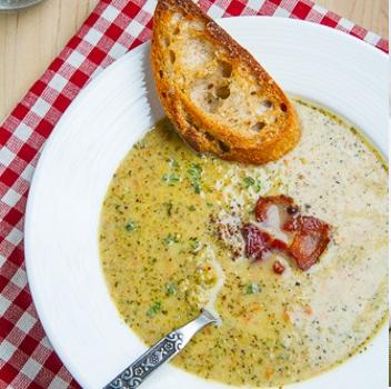 Option: Start the soup out by cooking 4 strips of bacon, use the grease to cook the vegetables instead of the oil and serve the soup garnished with the crumbled bacon.