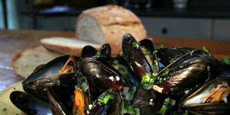 2. Move the mussels to a large serving dish with a slotted spoon, discarding any that have not opened. Whisk the butter into the cooking liquid, along with the parsley, and pour over the mussels.