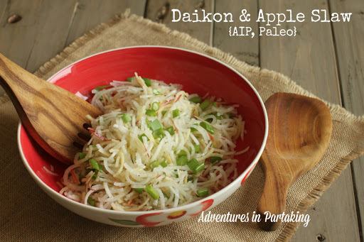 (3) give the diakon & apple a rough chop, so the pieces aren't so long. Just pile on cutting board and chop 6-8 times