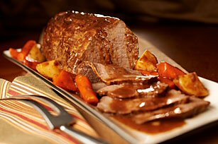 Bake 2 hours or until tender. Serve with vegetables and pan gravy.