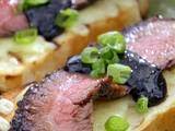 Brush the flank steak with the remaining 2 tablespoons of oil and season liberally with salt and pepper. Grill until golden brown on the 1 side, about 4 minutes, turn over and grill until the other side is golden brown, about 4 minutes. Move to a cooler part of the grill away from direct heat. Baste with the sauce and turn several more times until cooked to medium-rare doneness, about 15 minutes longer. Remove from the grill to a cutting board and loosely tent with foil. Let rest 10 minutes before cutting against the grain into thin slices.
