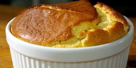 3. Beat the whites to stiff peaks with a pinch of salt. Stir a spoonful into the yolk mixture, then pour the yolk mixture onto the remaining whites and gently fold together. Pour into the soufflé dish and bake until risen and set, but still slightly creamy in the centre, about 30 minutes, depending on the size of the soufflé dishes. Serve immediately before it slumps.