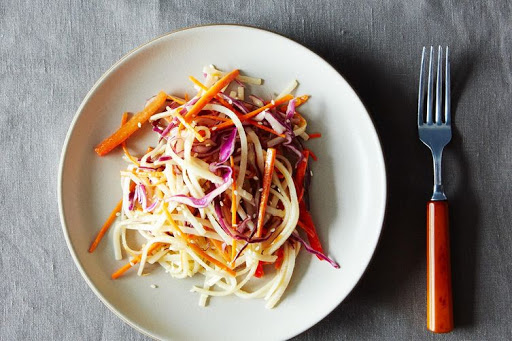 1. A note regarding noodle choice: Any long, thin pasta will do in this recipe, but if you want to go the rice noodle route (for taste and/or gluten reasons), vermicelli and other, wider rice noodles (like those pictured here) hold up much better than brown rice noodles when cooked and then chilled. Regular spaghetti, in my opinion, is also a heroic move.