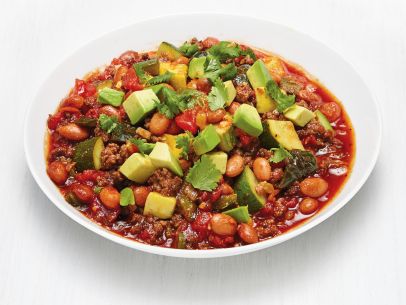 Stir the squash into the pot. Partially cover and cook, stirring occasionally, until the squash is tender and the chili thickens slightly, about 10 minutes (add up to 1/2 cup water if the chili is too thick). Season with salt. Top each serving of chili with the avocado and some cilantro.