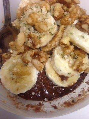 Add all to food processor and process. Rest overnight in fridge. Serve with nuts, chopped banana and hemp hearts