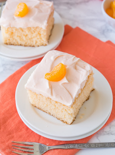 Combine 1 cup of the cold orange soda with 2 envelopes of the Dream Whip topping mix in a large bowl and beat on low for 30 seconds, then medium speed until soft peaks form. Spread topping over cooled cake and garnish with mandarin orange segments.