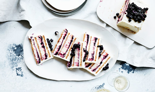 Just before serving, mix blueberries into reserved jam and spoon over cake.